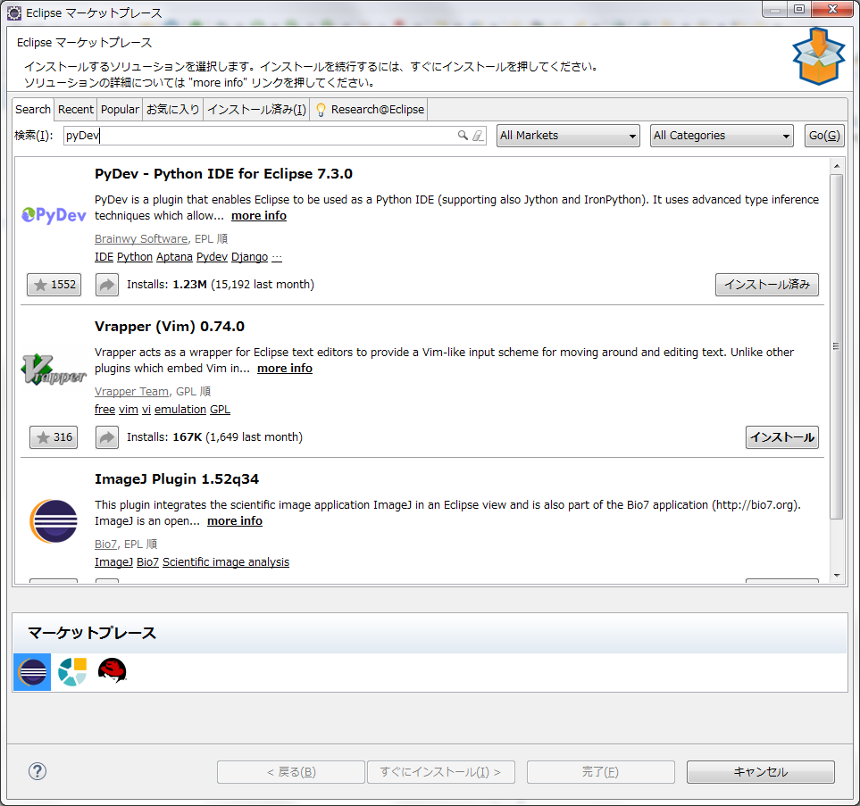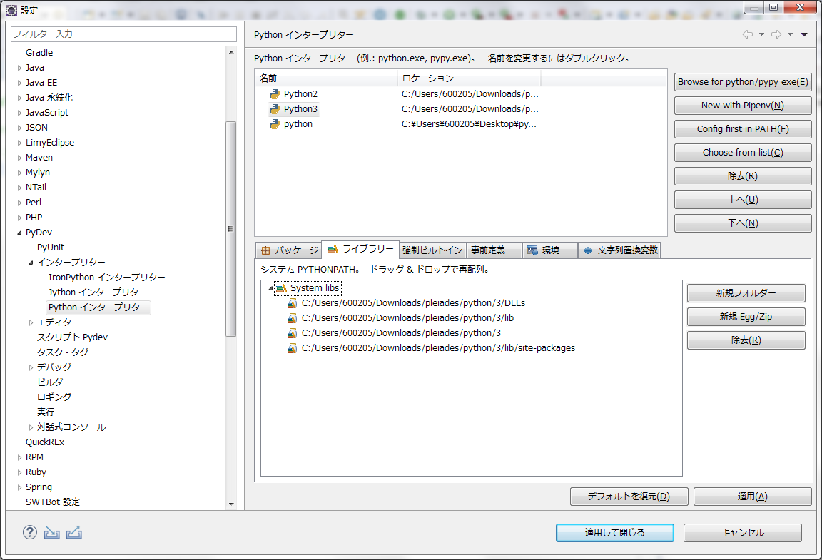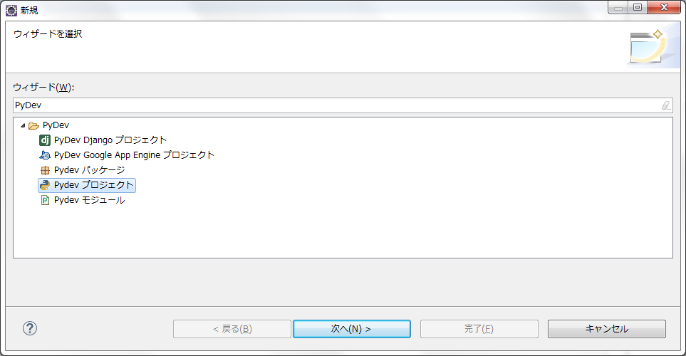 そして、pyDevをインストールします
