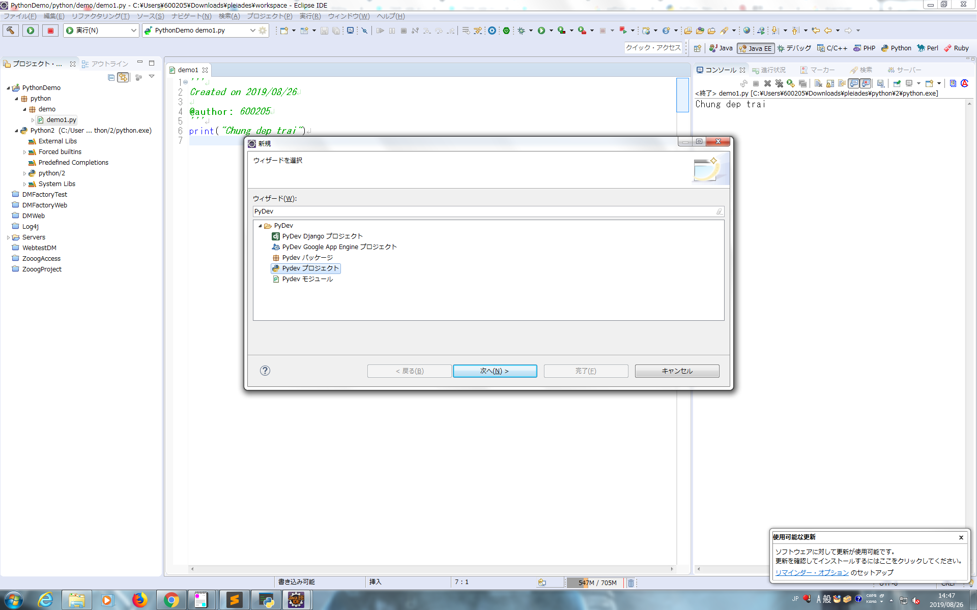 EclipseではpyDevを確認しましょう