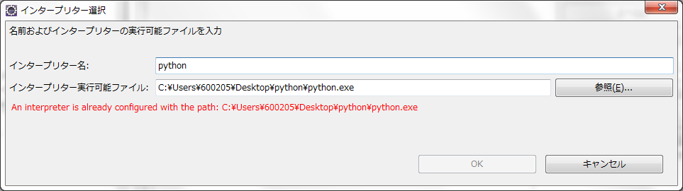 そして、PyDev–>インタープリター–>pythonインタープリターを選択します